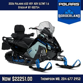 The Voyageur Adventure Ultimate 155 features the smooth, predictable, and quick accelerating power of our 650 Patriot 2-stroke engine. |